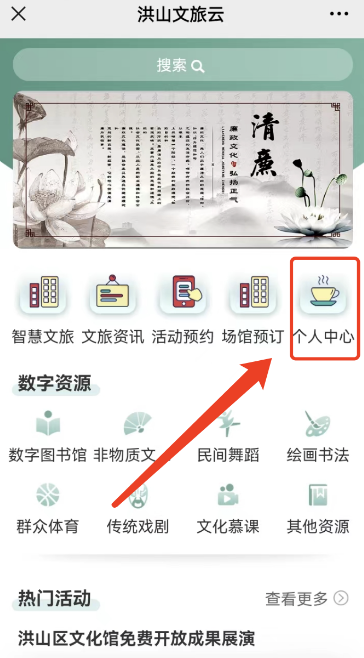 进入洪山文旅云网页后,点击个人中心,老用户直接用手机号登录;新用户需要先用手机号注册再登录。